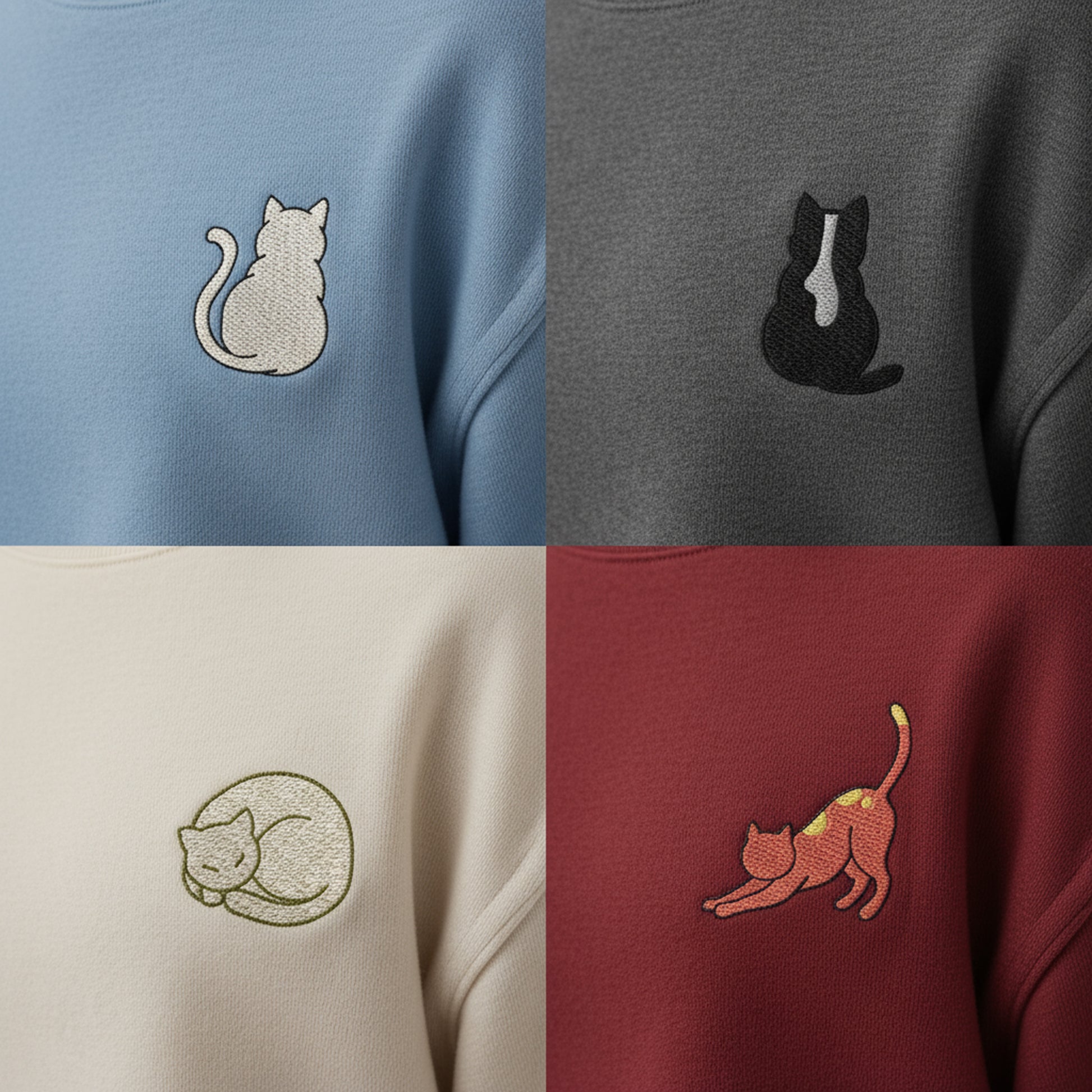 ✶ Cat Embroidery Pocket designs on sweatshirts or hoodies