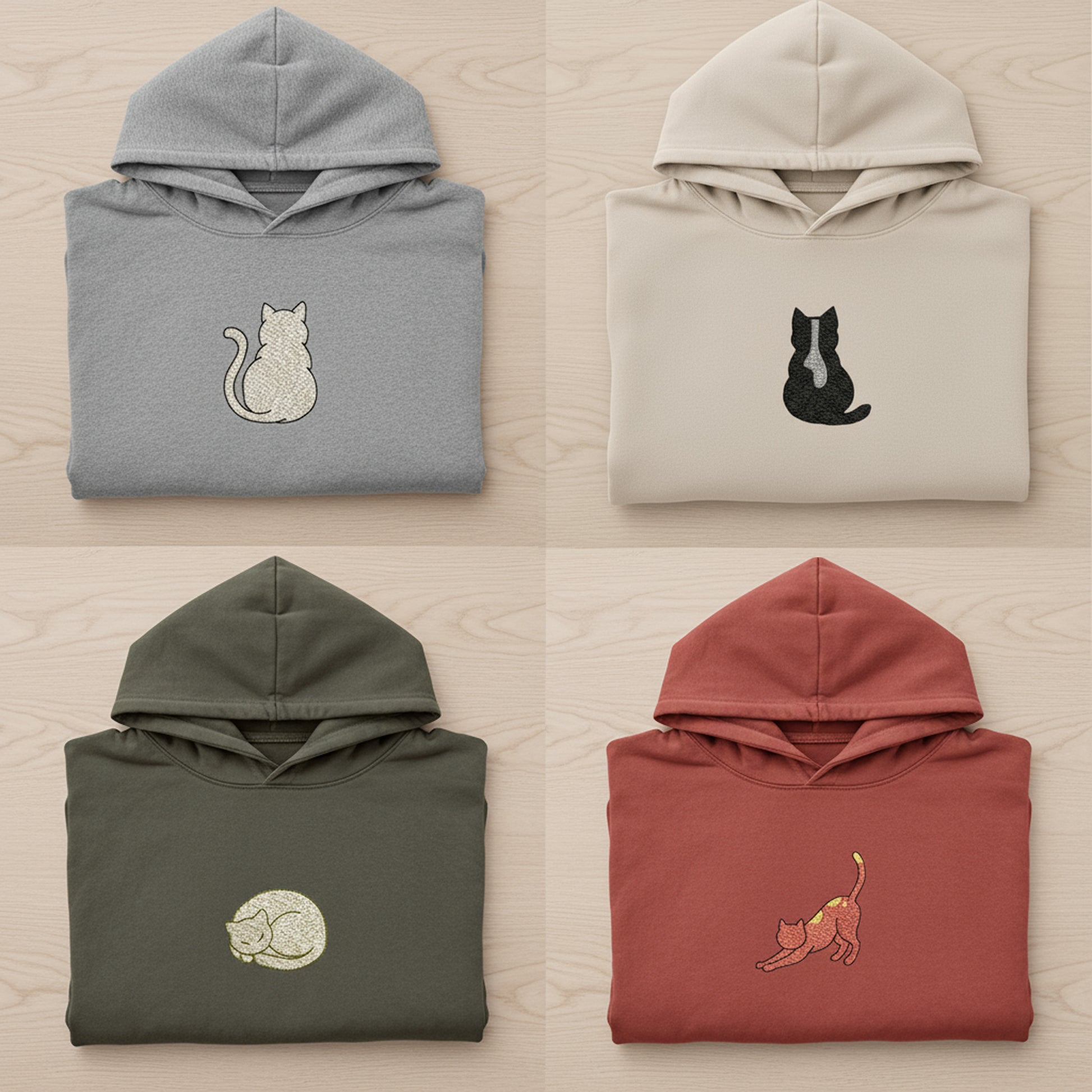 Bring your projects to life with this Mini Cat Embroidery Design Set, a delightful collection of four small embroidery cat patterns, sitting, sleeping, stretching, and curled-up kittens. Each design captures the adorable personality of real cats in a clean, minimalist stitch style that looks elegant on any fabric.